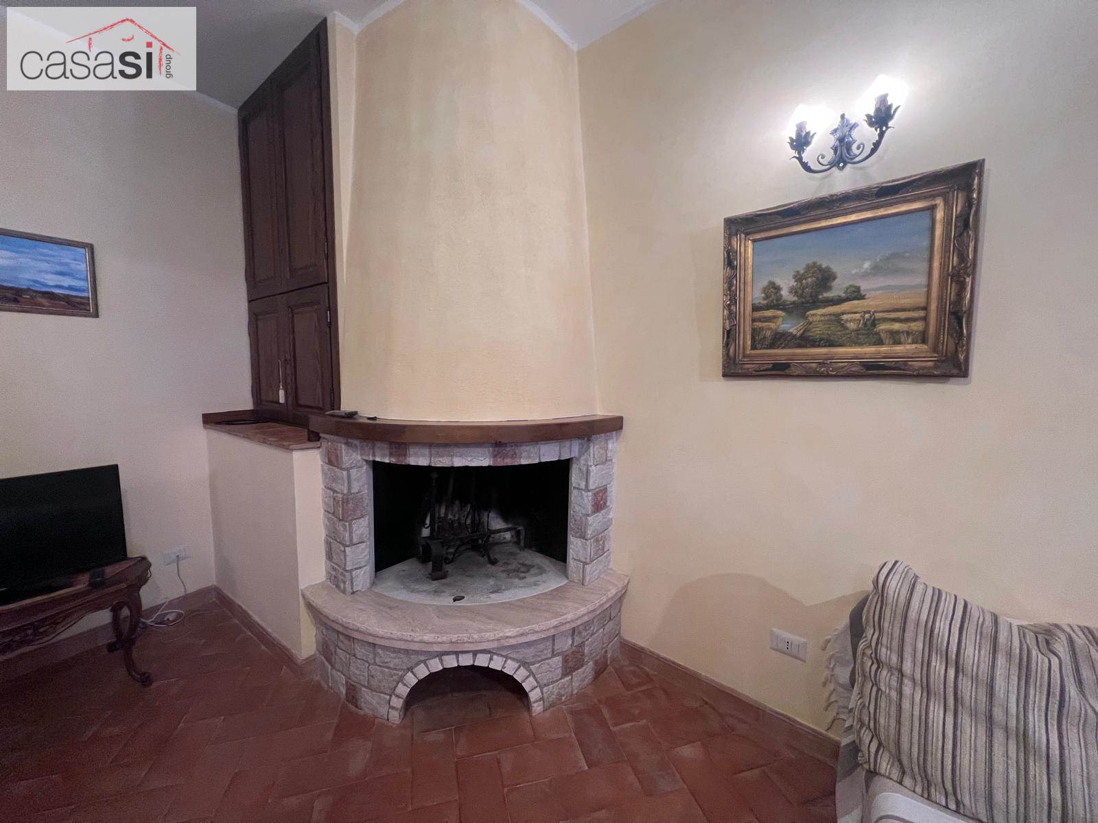 Accogliente *soggiorno con caminetto, elegante e luminoso